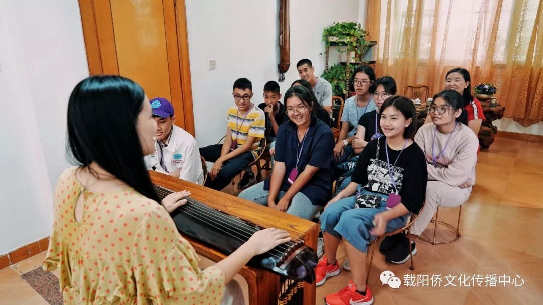潮州人“咬咬”是一位古琴爱好者,在家中,她向营员们表演了古琴演奏,并指导营员体验中国古琴